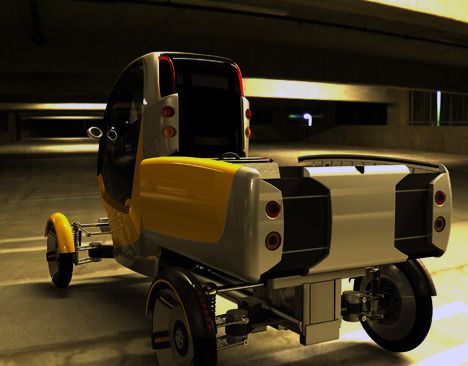 일단 CarGo의 가장 큰 특징은 짐칸부분이 폴딩되는 구조로 내로우모드(narrow mode), 컴팩트모드(compact mode), 픽업트럭모드(pickup truck mode) 등 3가지로 트랜스포밍이 가능하다는 점이다. 덕분에 택배물량이 많을때는 마치 짐차처럼 짐칸을 열어서 부담없이 편리하게 짐을 실을 수 있고, 그렇지 않은 날에는 이 짐칸을 접고 날렵하게 도심을 질주할 수 있다. 1인승으로 디자인된 덕분에 폭이 좁고 구조 또한 간편하지만 전면유리에서 루프쪽으로 이어지는 유리창은 마치 최신 스포츠카처럼 시원스런 시야를 만들어 내고, 짐칸 역시 측면에서 손쉽게 열도록 되어 있어서 내리자마자 바로 짐을 꺼내서 이동할 수 있다. 비록 2인승이 아니라 가족적인 차량은 아니라는 점이 아쉽지만, 통상 택배기사분들이 혼자서 이동하는 경우가 90% 이상이라는 점을 감안하면 참 실용적이라는 생각이 든다. 디자이너의 철학이 담긴 세련된 디자인과 트럭같지 않은 깜찍한 외모, 거기에 실용성까지 겸비한 덕분에 실제로 출시되면 택배기사나 퀵기사분들께는 큰 관심을 끌 만한 차라는 생각이 든다. 실제로 스펙에는 없지만 전기로 구동된다면 그야말로 금상첨화! 아마 이런차라면 택배기사는 택배기사님대로 운전하는 재미가 쏠쏠하고, 우리 또한 차 한번 구경하는 재미가 쏠쏠할 듯 싶다.