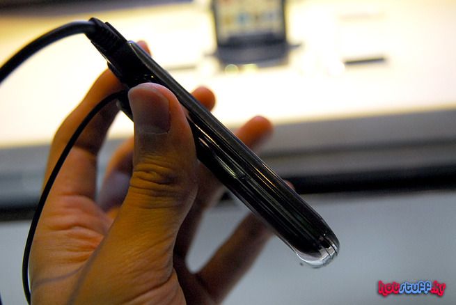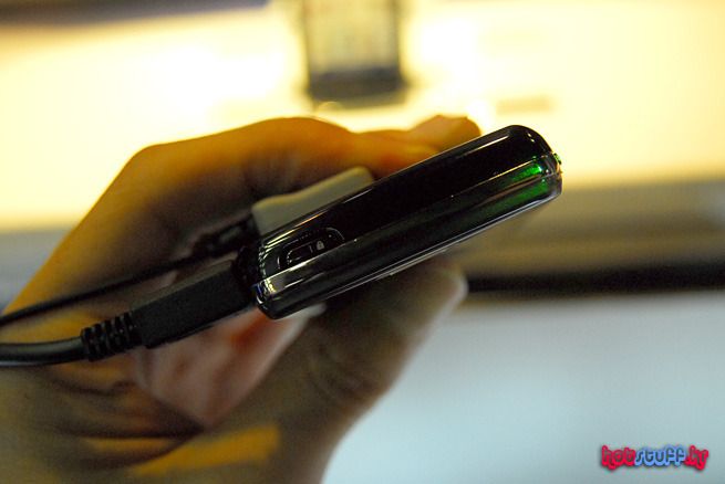 실제로 손이 닿는 부분은 그냥 매끄러운 플라스틱 질감 그대로입니다. 안쪽이 가공되어 있는 것으로 보여집니다. 우리가 애용하고 있는 터치스크린의 센서를 키패드에 깔고 손으로 클릭시 해당 센서가 이를 인색해 좌표값에 위치한 버튼의 입력을 알려주는 방식으로 생각됩니다. 덕분에 종전의 키패드와는 다른 독특한 투명키패드가 탄생했습니다. 아마 이 투명키패드는 '크리스탈 키패드'라는 명칭으로 알려질 것 같습니다. 물론 물리적인 키보드에 비해 눌리는 감은 덜하지만 버튼을 입력하거나 하는 일은 무리없이 잘 되더군요. 터치에 대한 거부감이 없는 유저라면 만족스러운 성능이 될 것 같습니다. 아쉽게도 직접 테스트를 해보진 못했지만 키패드를 이용해 노트북의 터치패드처럼 마우스 역할을 하거나 필기체인식 등의 기능도 사용할 수 있다고 합니다.