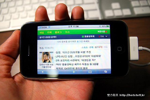 아이폰으로 자주 애용하게 될 무선인터넷입니다. 아이폰은 Wi-Fi가 접속되는 환경에서는 Wi-Fi로, 그리고 아닌 경우 3G로 연결이 되게 됩니다. 이는 자동으로 바뀌기에 가입시에도 명확히 설명을 하고 주의를 시키죠. 일단 인터넷 성능이 상당히 좋습니다. 물론 데스크탑의 그것과 비교하는 것은 무리가 있겠지만 화면이 뜨는 속도나 뛰워진 화면을 조작하고 스크롤 하는 것은 매우 쾌적합니다.