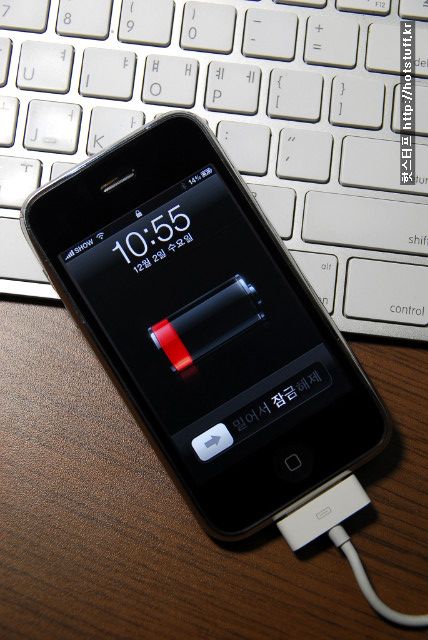 드디어 본 모습을 드러낸 아이폰입니다. 오늘 충전도 하지 않고 몇시간동안 만지작거린 결과로 배가고파 허덕이고 있길래 케이블을 연결하고 충전을 시켜주고 있습니다. 깔끔하고 군더더기 없는 충전화면은 역시 아이폰답습니다.