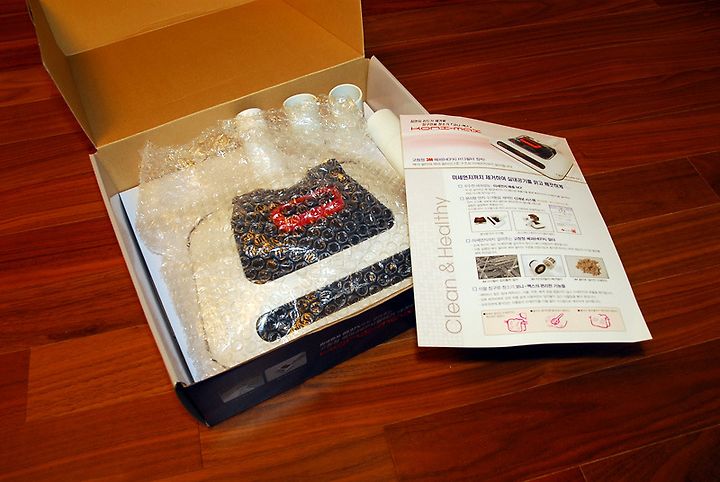 패키지를 연 모습입니다. 제품은 손상되지 않도록 별도의 에어캡으로 잘 보관되어 있으며, 제품의 특성을 파악하는데 도움이 되는 설명서가 함께 들어 있습니다.