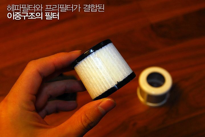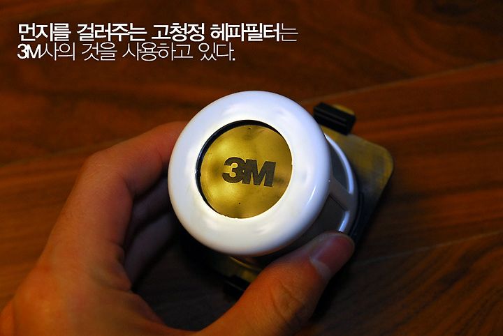 완전히 제거된 필터구성부품들입니다. 우선 이중 걸름망의 매쉬필터와 3M사의 고청정 헤파필터, 그리고 필터를 지탱하고 고정해주는 홀더가 갖춰져 있습니다.