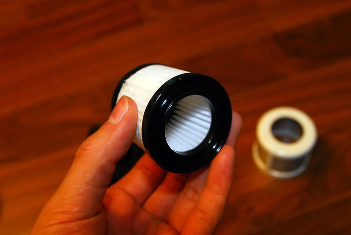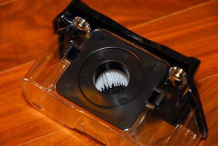 분리형 먼지 수거통에서 필터를 완전히 제거한 모습입니다.