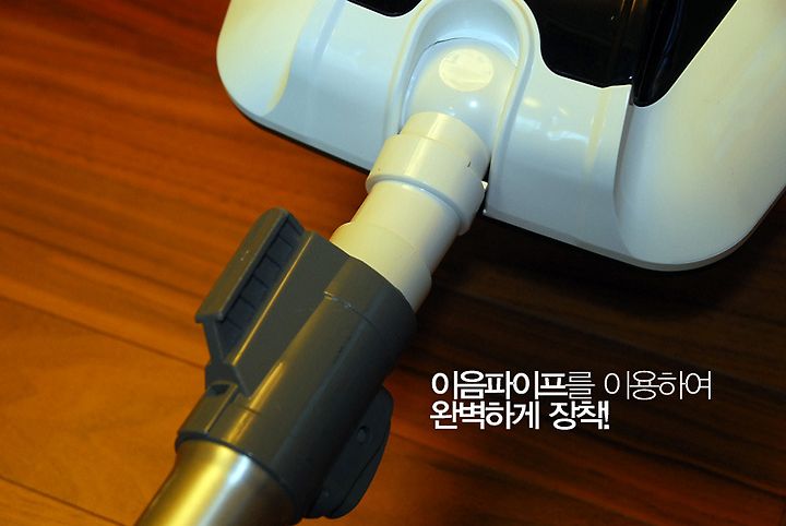 그냥 한번 연결해 봤습니다. 뭔가 헐렁한 것을 보니 아무래도 코니맥스가 기존 청소기보다 조금 작은 모양입니다.