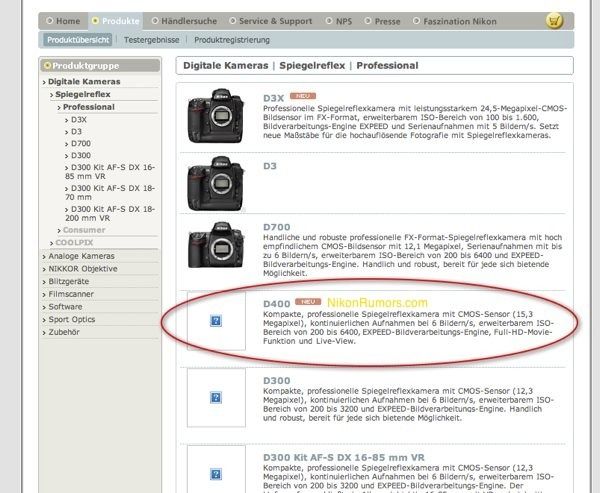 최근 환율때문에 가격이 오른 DSLR들을 보면 눈물이 날 지경이지만, 그래도 신제품 소식은 눈물을 그치고 웃음을 살짝 지을수 있게 해준다. 최근 강력한 제품 출시로 유저들에게 좋은 반응을 얻고 있는 니콘의 후속기종의 정보가 니콘 독일사이트에서 유출되어 화제다. 이번에 정보가 유출된 제품은 바로 니콘 D400이다. 잠시 유출된 정보에 따르면 D400은 D300에 비해 300만화소 가량이 더 풍부해진1,530만 메가픽셀의 화소에 200~6400의 ISO, 초당 6컷의 촬영성능과 1080p 풀HD 레코딩이 가능한 것으로 알려졌다. 이미 정보가 올라왔었던 페이지는 연결이 불가능해져서 더 검증하거나 신뢰하기가 힘들지만, 과연 이 제품이 D300에서 D700으로 껑충 뛴 라인업에 발을 살짝 담굴지 기대해 볼 일이다.